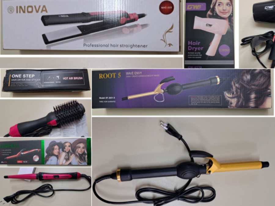 Riječ je o uvijačima “Rot pet”, tip DT-2031-9, bar kod 6622071500315, “Uan step” tip 5250, “DŽandeli”, tip ЈDL-518, te pegla za kosu “Inova” tip NHG-325, broj artikla 22SWA022315 i bar kodom 8604202223155 i fen “GVB“ tip GW-6570.