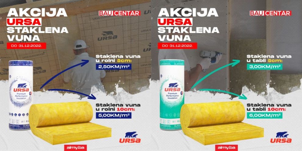 Do 31.12.2022. godine, iskoristite akcijske cijene na URSA staklenu vunu u ALMY Bau Centrima!