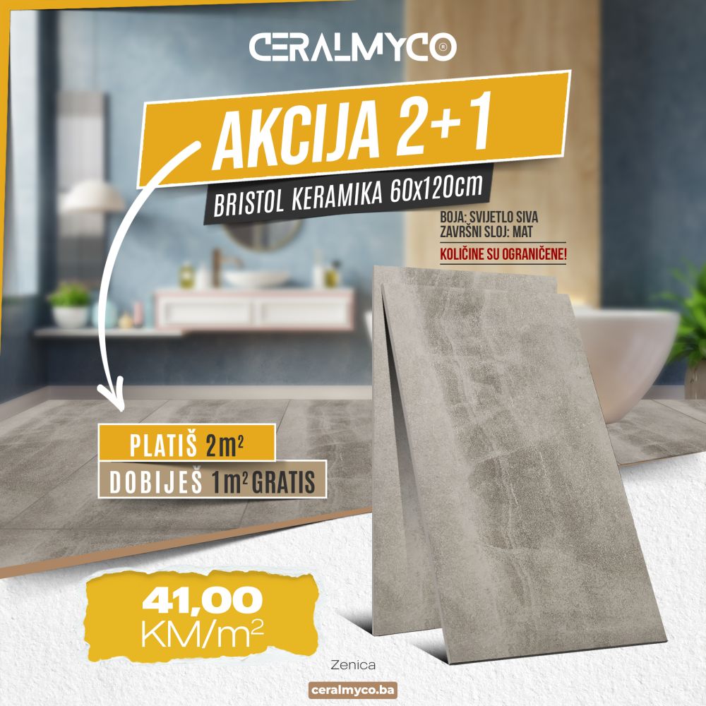 Za svaka kupljena 2m2 pločica BRISTOL 60X120cm, 1m2 dajemo GRATIS!