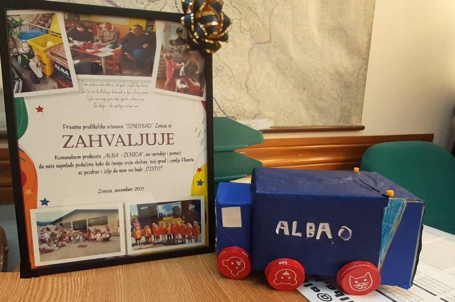 Danas su u posjeti Društvu za uklanjanje otpada i reciklažu “ALBA Zenica” d.o.o. Zenica došla mini delegacija Sindibad Obdaništa iz Zenice – direktorica Šefika Softić, odgajateljica Ekrema Delić Dizdar i dječak Muhamed Dedić. Domaćini kažu da im je bilo veliko zadovoljstvo ugostiti svoje prijatelje iz Sindibad Obdaništa, koji su ovom prilikom uručili Zahvalnicu ALBI za pomoć i saradnju u podučavanju najmlađih kako da sačuvaju svoju okolinu, grad i planetu, ali i poklon kamion ALBA napravljen od recikliranih materijala, na šta smo u ovoj kompaniji posebno ponosni. ALBA i Sindibad su zajedno uključeni u aktivnosti pod sloganom #SakupiRazvdojiZbrini.