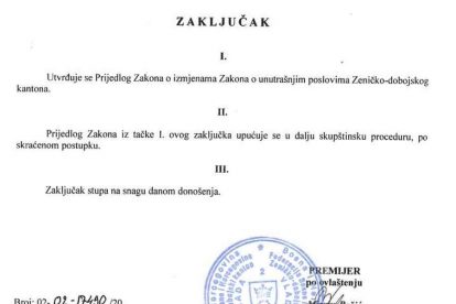 Prva tačka dnevnog reda glasi Prijedlog Zakona o izmjenama Zakona o unutrašnjim poslovima Zeničko-dobojskog kantona – skraćeni postupak – u nastavku možete preuzeti ili vidjeti taj prijedlog – po kojem se za JOŠ jednu godinu pomjera provođenje SAMOSTALNOSTI Uprave policije od Ministarstva.
