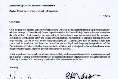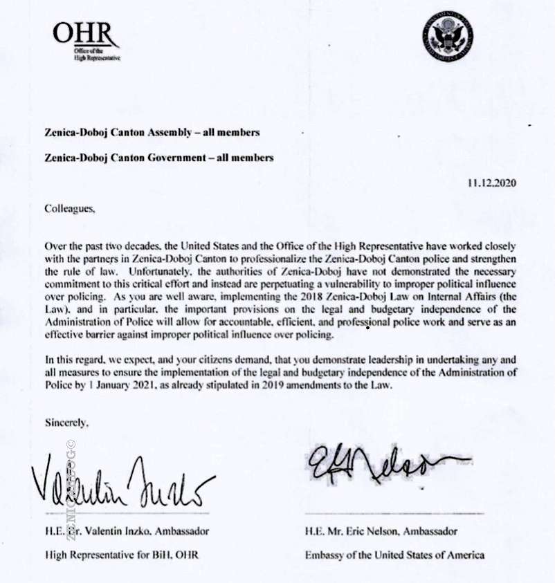 U zajedničkom pismu koje je u posjedu portala Zenicablog, naveli su da, uprkos dugoj i kvalitetnoj saradnji na osnaživanju i profesionalizaciji policije, vlasti u ZDK nisu pokazale neophodnu posvećenost takvim nastojanjima.