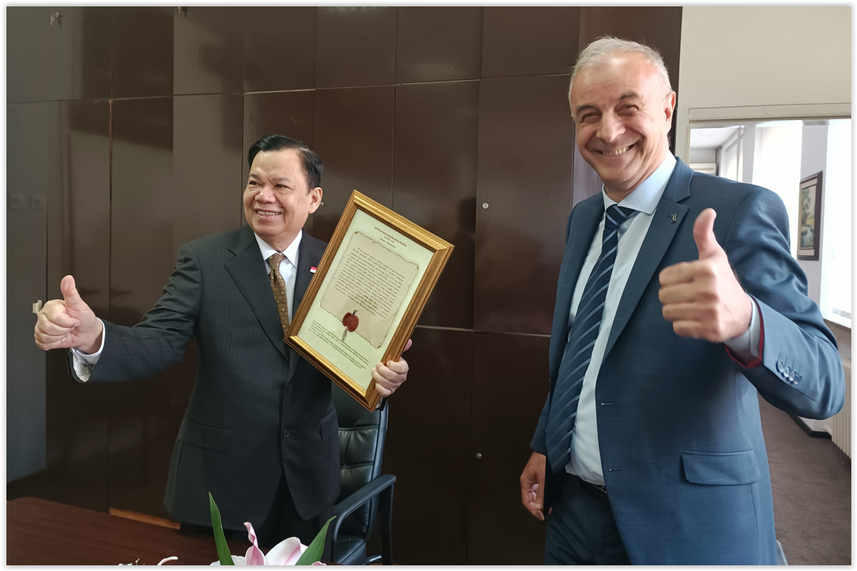 „Ja, kao rektor Univerziteta u Zenici, sam veoma zadovoljan da danas mogu ugostiti ambasadora Indonezije, te da možemo razgovarati o budućoj saradnji dvije zemlje, posebno o saradnji Univerziteta u Zenici sa univerzitetima u Indoneziji. Saradnja sa Indonezijom datira od ranije kroz razmjenu studenata. Studenti iz Indonezije su dolazili na naš Medicinski fakultet, a u planu je i razmjena nastavnika. Također, iskazan je interes za saradnju sa Metalurško-tehnološkim fakultetom, jer Indonezija ima izuzetno razvijenu metalurgiju.“- istakao je prof.dr.sc. Jusuf Duraković, rektor Univerziteta u Zenici.