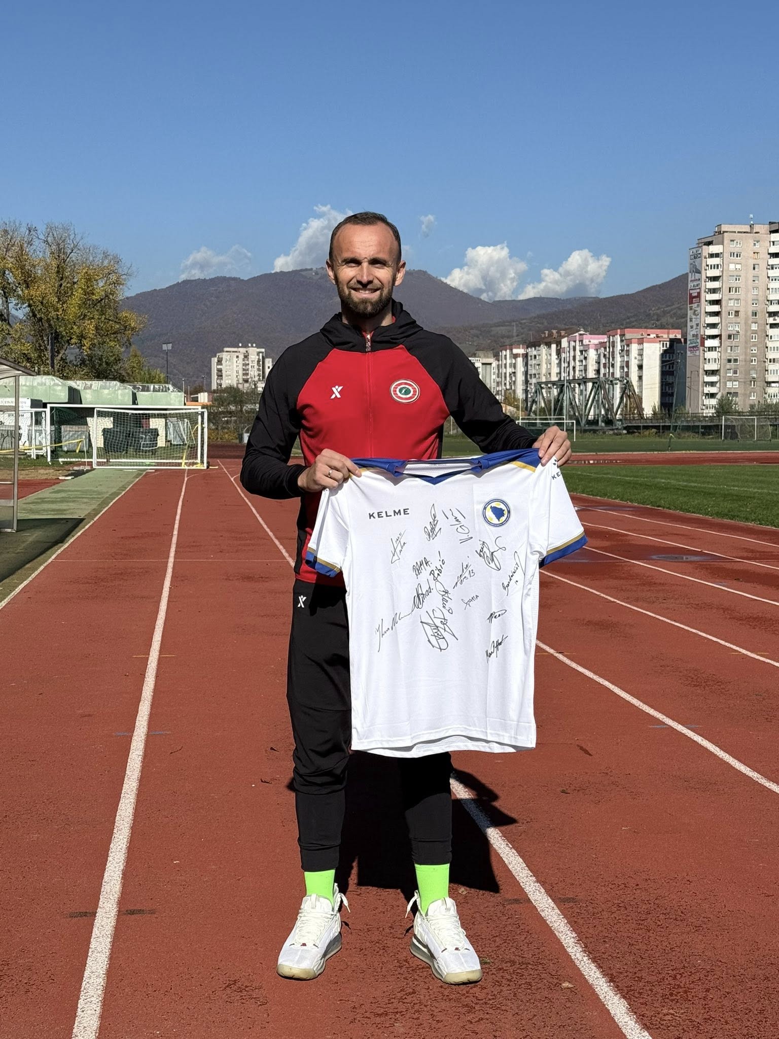 • Drugi dres je dres reprezentacije BiH, ali s posebnim potpisima Humanih zvijezda BiH. Na njemu su, pored mog, i potpisi legendi poput Elvira Bolića, Ermina Zeca, bivšeg selektora Mehmeda Baždarevića, Vlatka Glavaša, Adisa Nurkovića i mnogih drugih!