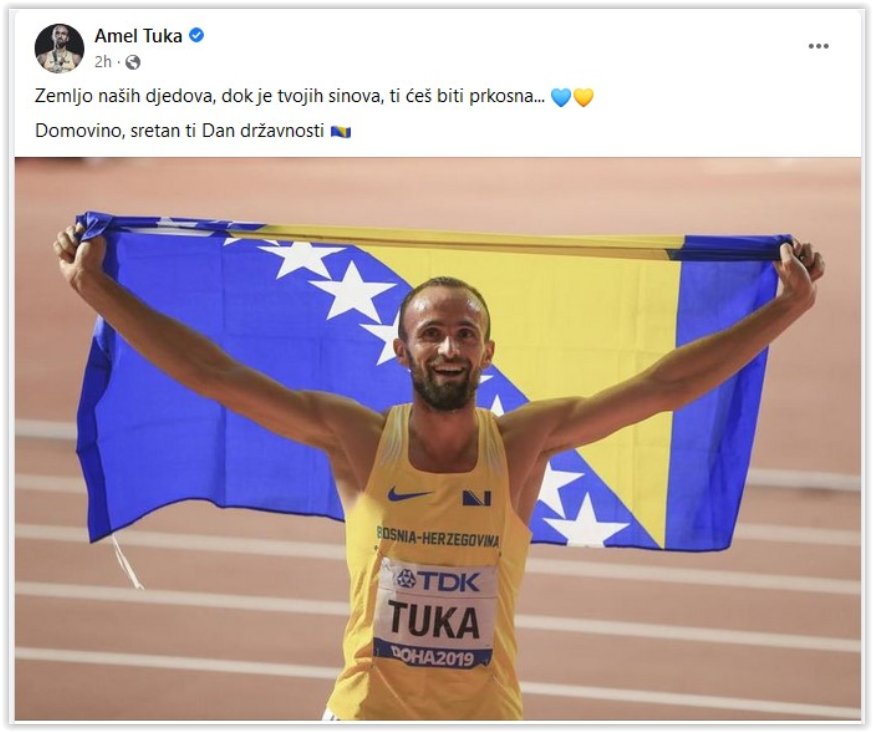 Amel Tuka, naš najbolji atletičar uputio je čestitku povodom Dana državnosti Bosne i Hercegovine.