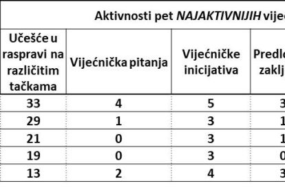 – aktivnosti pet najaktivnijih vijećnika