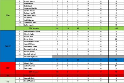 Slijede ga Nermin Mehić (SDP) sa 29, Amra Mehmedić (BHI KF) sa 25, Ernad Bešlagić sa 24, te Faris Hazić (SDA) sa 22.