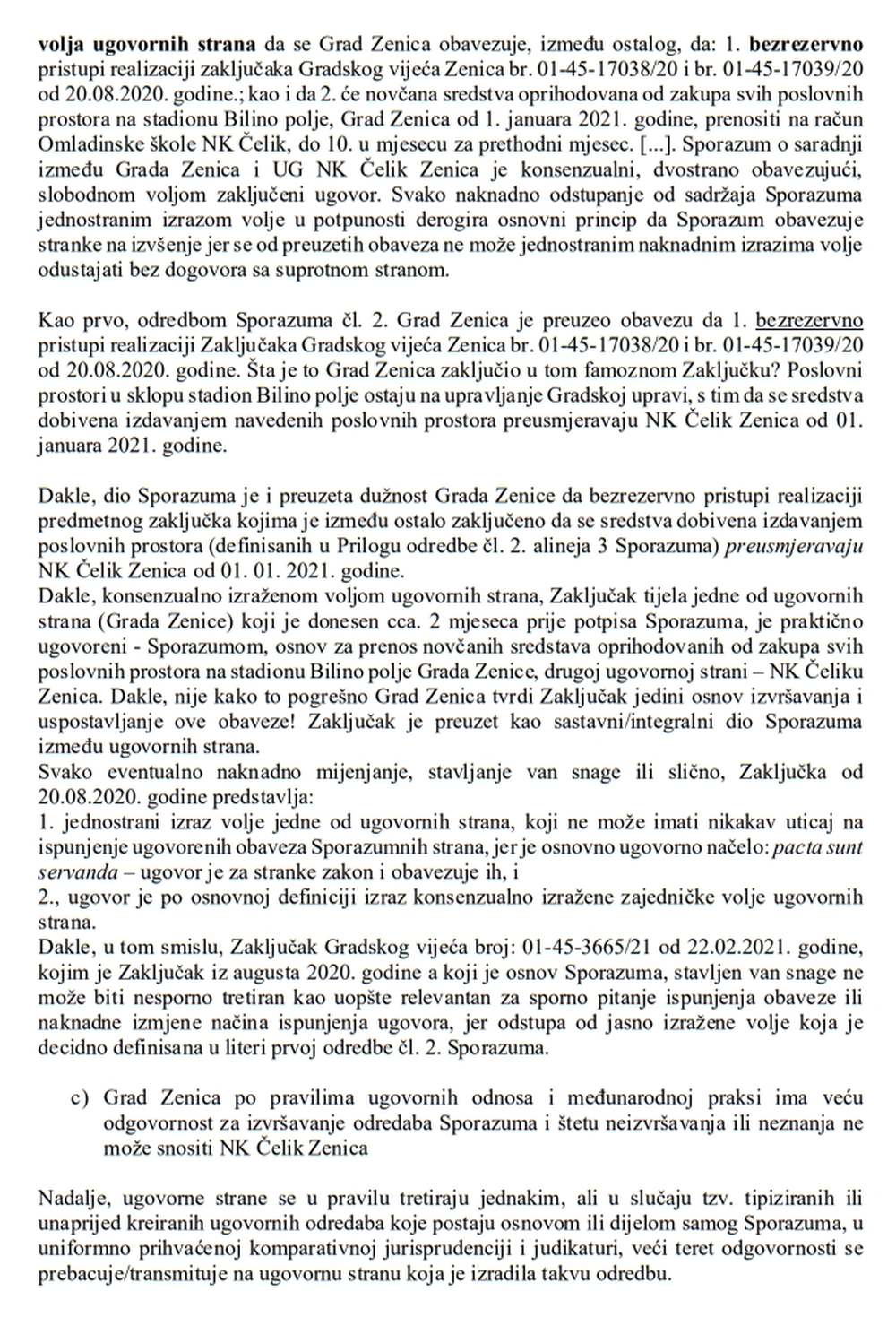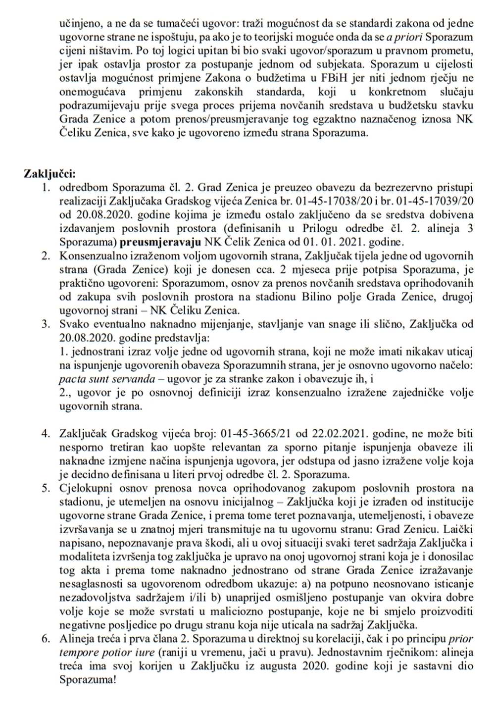 Analiza Sporazuma i presude – PDF DOKUMENT ZA PREUZETI NK Čelik Zenica – Grad Zenica