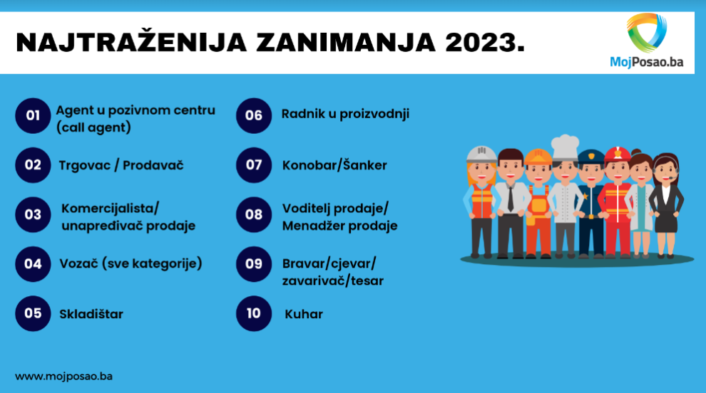 Najtraženija zanimanja u 2023. godini bila su: