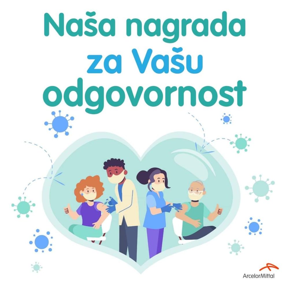 ArcelorMittal Zenica danas je saopćio da “cijeni pokazanu odgovornost svih onih koji su svojim vakcinisanjem protiv COVID-19 učinili da Kompanija i grad Zenica budu sigurnije okruženje” za sve nas. U znak zahvalnosti, ali i motivacije za one koji to još nisu učinili, Kompanija nagrađuje sve radnike koji su se vakcinisali kao i članove njihovih porodica koji su se vakcinisali u našoj organizaciji sa 100 KM. Ovo se također odnosi i na penzionisane radnike AMZ koji su se vakcinisali u njihovoj organizaciji.