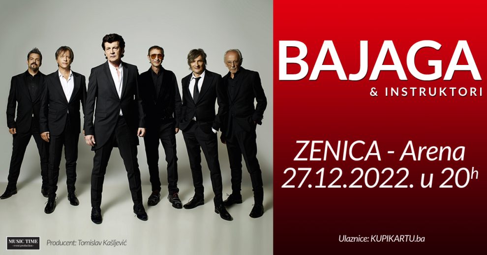 Jedan od najvećih pop-rock bendova u regiji Bajaga i instruktori nastupit će večeras (utorak, 27.12.) u Gradskoj areni u Zenici, s početkom u 20 sati! Early bird ulaznice po cijenama od 20, 30 i 40 KM u prodaji su preko sistema kupikartu.ba.