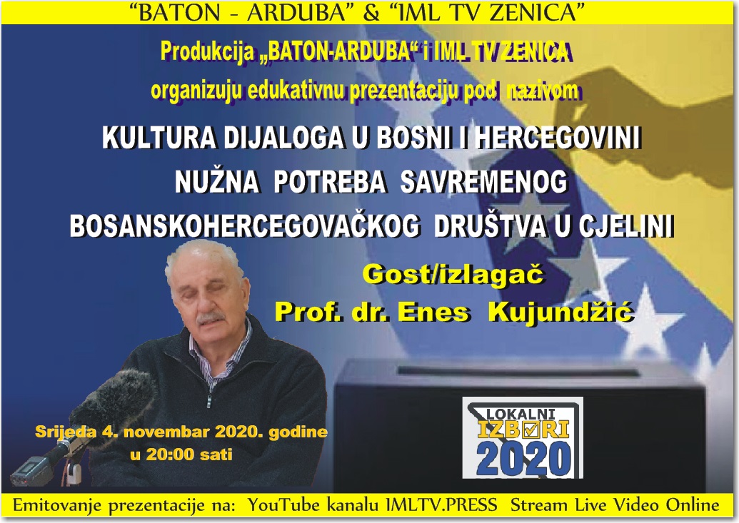 Batonovi muhabeti: “Kultura dijaloga u BiH” Šefik Kurdić – U sklopu projekta „Batonovi muhabeti“ a povodom predstojećih lokalnih izbora u Bosni i Hercegovini 2020. godine, produkcija dokumentarnog filma „Baton-Arduba“ Zenica u saradnji sa IML TV Zenica, organizuje četiri video prezentaciju pod nazivom: