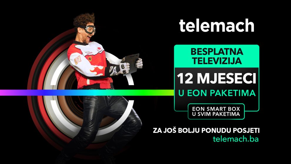 Zahvaljujući novoj, atraktivnoj akciji kompanije Telemach BH, u vrhunskim televizijskim kanalima koje donosi EON – najpopularnija platforma u Jugoistočnoj Evropi – sada možete uživati besplatno i to cijelih godinu dana! Iskoristite ponudu, postanite naš korisnik, odaberite jedan od EON paketa sa zvanično najbržim i najbolje ocijenjenim internetom, televizijom i digitalnom fiksnom telefonijom i dobit ćete besplatnu televiziju 12 mjeseci. Još bolja pogodnost očekuje sve koji se u okviru ove nove akcije pretplate na neki od EON paketa putem Telemach web stranice telemach.ba.