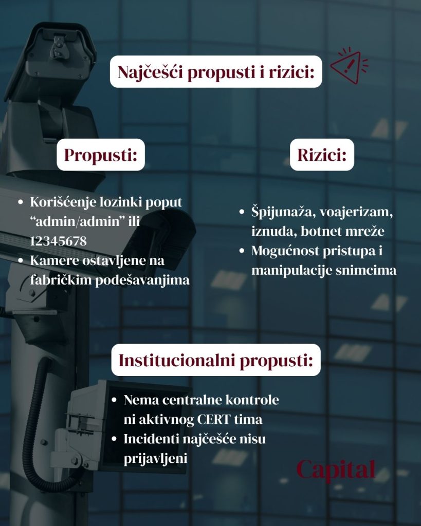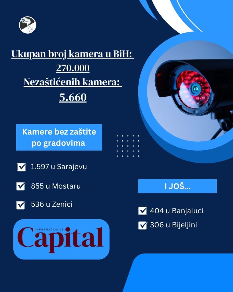 Istraživanje portala CAPITAL pokazalo je da na hiljadama nadzornih kamera u BiH zaštita takoreći ni ne postoji, zato što su prilikom instalacije ostavljene na banalnim fabričkim postavkama ili čak nemaju nikakvu lozinku za pristup.