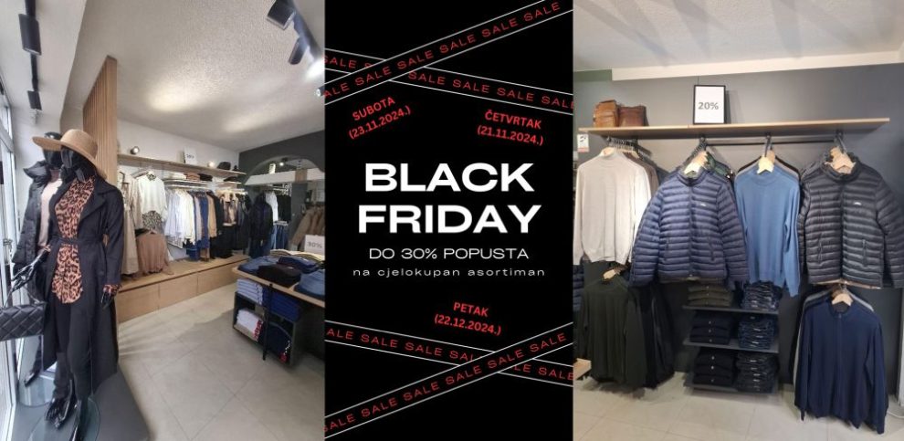 Vrijeme je da osvježite svoj stil i priuštite sebi najbolje – po cijenama koje se ne propuštaju. Dođite i uvjerite se sami na adresi Mehmedalije Tarabara 11. Ne propustite ovu priliku. Stiže Black Friday, a vi zaslužujete najbolje!