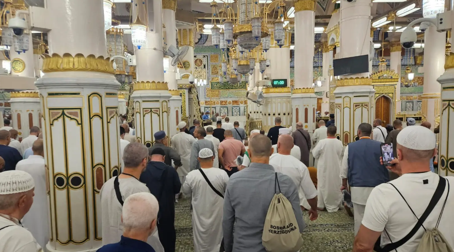 Prve grupe naših hadžija u grad Božijeg Poslanika stigle su jučer poslijepodne, a već rano jutros, prema odobrenom rasporedu, posjetile Revdu, prostor u Poslanikovoj džamiji između njegovog minbera i mezara.