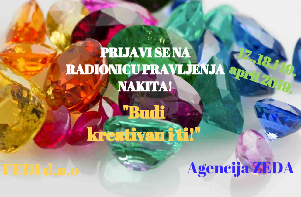 Agencija ZEDA u saradnji s preduzećem Fedi d.o.o. Zenica, objavljuje poziv za učešće na šestoj kreativnoj radionici u mjesecu aprilu. Radio se o RADIONICI PRAVLJENJA NAKITA OD POLUDRAGOG KAMENJA I KRISTALA.