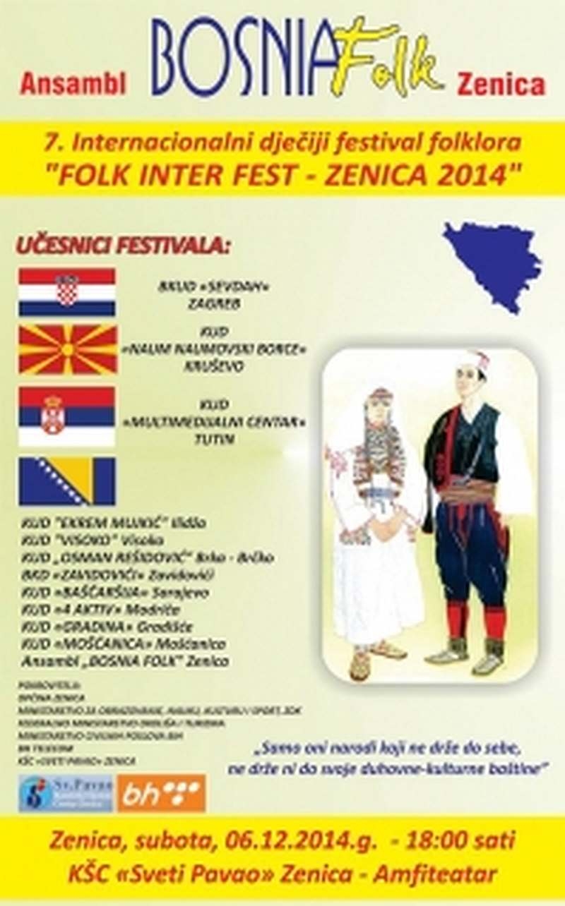 Ansambl Bosniafolk iz Zenice ove godine organizira sedmi dječiji međunarodni festival folklora „ Folk Interfest 2014“ godine, na kojem će učestovati 11 KUD-ova...