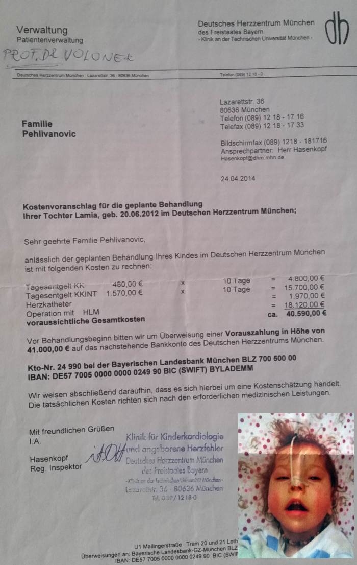 Dvoipogodišnja Lamija Pehlivanović boluje od srčnog oboljenja AVSD-a (atrioventrikularni setalni defekt) i mikrocefalije (rijetka anomalija povezana sa...