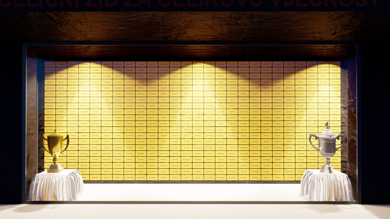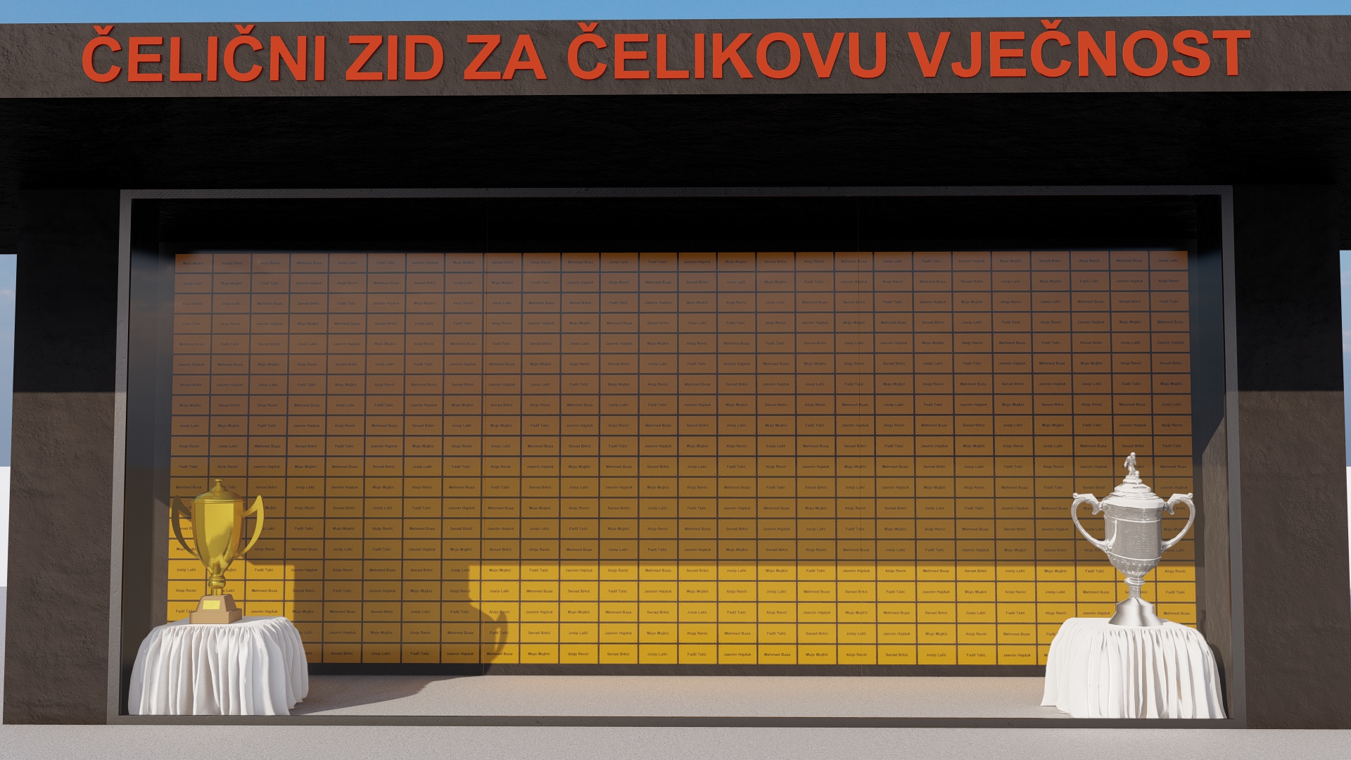 Čelični zid se nalazi na prizemlju vanjske strane zapadne tribine Bilinog polja, te sadrži 520 pločica dimenzija 20 x 10 cm na kojima može pisati željeni sadržaj svakog učesnika u akciji koji izvrši uplatu u vrijednosti 100,00 KM za jednu pločicu.