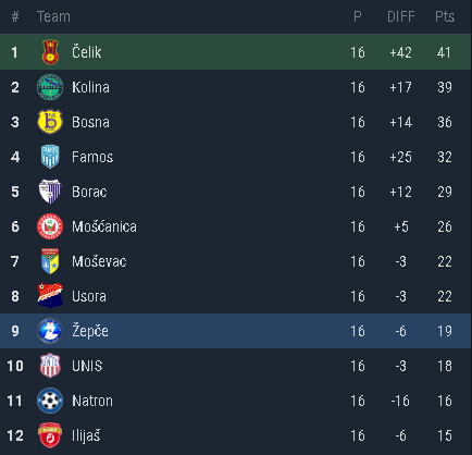 Nakon velike pobjede rezultatom 1:5 protiv Moševca u Maglaju, Crno-crveni dočekuju ekipu Žepča u svom pohodu na rang više. Žepče se trenutno nalazi na devetoj poziciji sa 19 osvojenih bodova. U prvom dijelu sezone naša ekipa savladala je u Žepču istoimeni klub rezultatom 0:4.