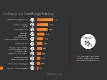 Platne kartice se najčešće koriste za kupovine u supermarketima (66%), prodavnicama odjeće i obuće (46%), na benzinskim pumpama (44%), te prodavnicama namještaja i tehničkih uređaja (31%). S druge strane, medicinske ustanove (30%) i lokalni marketi (21%) su najčešće pominjane lokacije na kojima bi ispitanici željeli plaćati karticama, što je još jedan pokazatelj navike bezgotovinskih plaćanja koju korisnici bezgotovinskih plaćanja u BiH stiču.