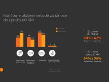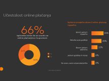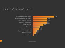 Na vrhu liste stvari koje se plaćaju online jeste kupovina odjeće (52%, 17 procenata više nego prošle godine). Zatim slijedi plaćanje mjesečnih računa online (35%, 9 procenata više nego prošle godine), te kupovina hrane isto (35%). Pored plaćanja gotovinom prilikom preuzimanja pošiljki, što je opcija koju koristi skoro dvije trećine ispitanika, 32% anketiranih je reklo da plaća karticama online, 16% ispitanika koriste bankovne aplikacije, dok još 14% njih kaže da plaća karticama prilikom preuzimanja robe.