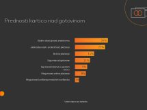 Razlog za često korištenje platnih kartica leži prije svega u stalnoj dostupnosti sredstava koju ova platna metoda nosi, što je istaklo 24 odsto ispitanika, dok još 22 odsto njih cijeni jednostavnost i praktičnost ovog vida plaćanja. Ono što bi dodatno podstaklo korištenje platnih kartica su popusti kod određenih trgovaca, što je izjavilo 50 odsto ispitanika, a interesantno je da je za 43 odsto ispitanika šira prihvatna mreža faktor koji podstiče korištenje.