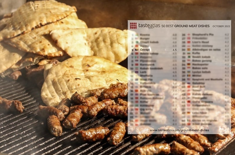 Poznata stranica TasteAtlas, “enciklopedija ukusa” i turistički vodič kroz svjetske tradicionalne specijalitete, podijelila je listu najboljih jela od mljevenog mesa, a na visokom 5. mjestu našla se Bosna i Hercegovina i naši ćevapi.