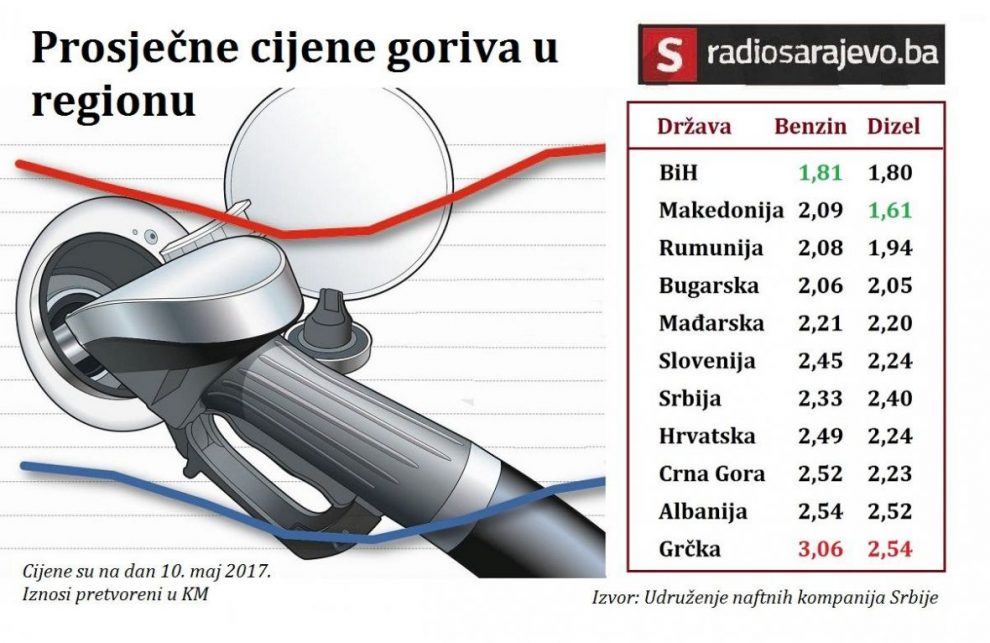 Cijene goriva u regionu – Zagovornici uvođenja dodatnih akciza na naftne derivate proteklih dana više puta su ponovili kako je gorivo u BiH “ionako najjeftinije u regionu”, pa “vozači neće ni osjetiti poskupljenje za 15 feninga”.