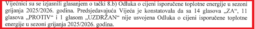 Slijedi video zapis glasanja kojim su vijećnici odbili povećanje cijene grijanja.