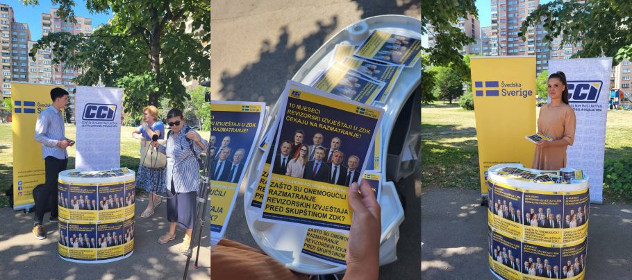 Centri civilnih inicijativa (CCI) su danas u Zenici održali uličnu akciju s ciljem informisanja građana o važnosti revizorskih izvještaja i negativnog odnosa koji Skupština ZDK ima prema istima. Naime, Kolegijum Skupštine ZDK je za prethodnih 10 mjeseci, od kako su revizorski izvještaji za Budžet ZDK, ZZO ZDK i Ministarstvo za privredu ZDK.objavljeni, 4 puta odbio stavljanje istih na Dnevni red Skupštine ZDK. Na taj način je onemogućeno razmatranje ovih izvještaja pred najvišim zakonodavnim tijelom u Kantonu.