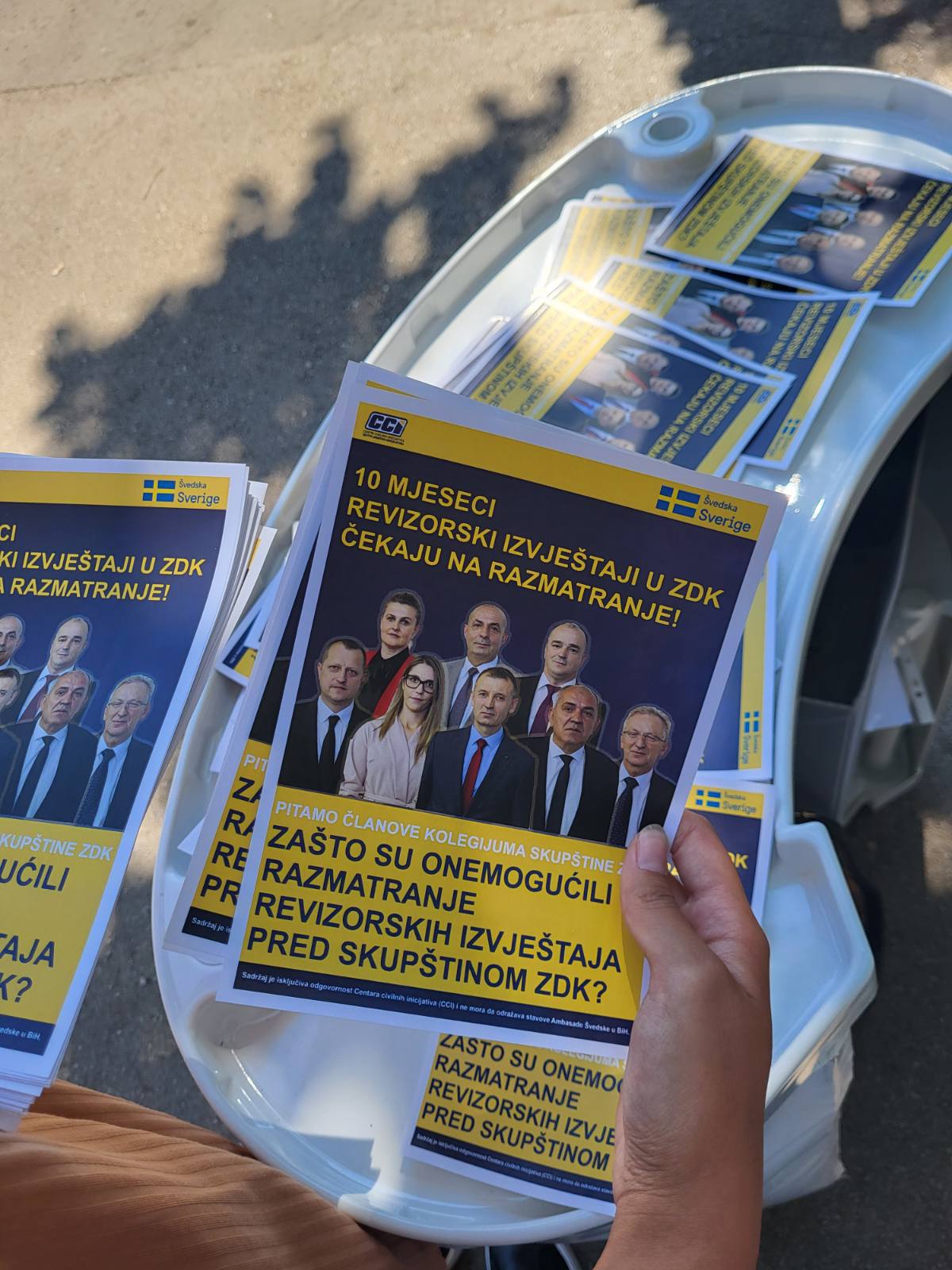 Centri civilnih inicijativa (CCI) su danas u Zenici održali uličnu akciju s ciljem informisanja građana o važnosti revizorskih izvještaja i negativnog odnosa koji Skupština ZDK ima prema istima. Naime, Kolegijum Skupštine ZDK je za prethodnih 10 mjeseci, od kako su revizorski izvještaji za Budžet ZDK, ZZO ZDK i Ministarstvo za privredu ZDK.objavljeni, 4 puta odbio stavljanje istih na Dnevni red Skupštine ZDK. Na taj način je onemogućeno razmatranje ovih izvještaja pred najvišim zakonodavnim tijelom u Kantonu.