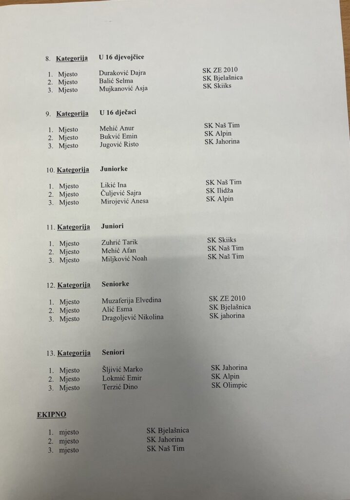 Dajra Duraković najbolja skijašica u BiH u kategoriji U-16.- Sinoć je u organizaciji Skijaškog saveza BiH održano proglašenje najboljih skijaša u svim kategorijama za sezonu 2024/25.