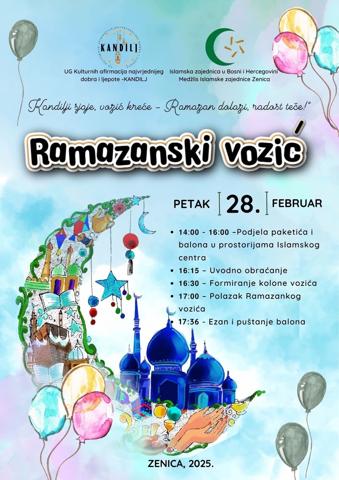 S radošću vas pozivamo na ovogodišnji 10. Ramazanski vozić, koji će svojim prisustvom, bojama i osmijesima najmlađih obasjati ulice našeg grada!