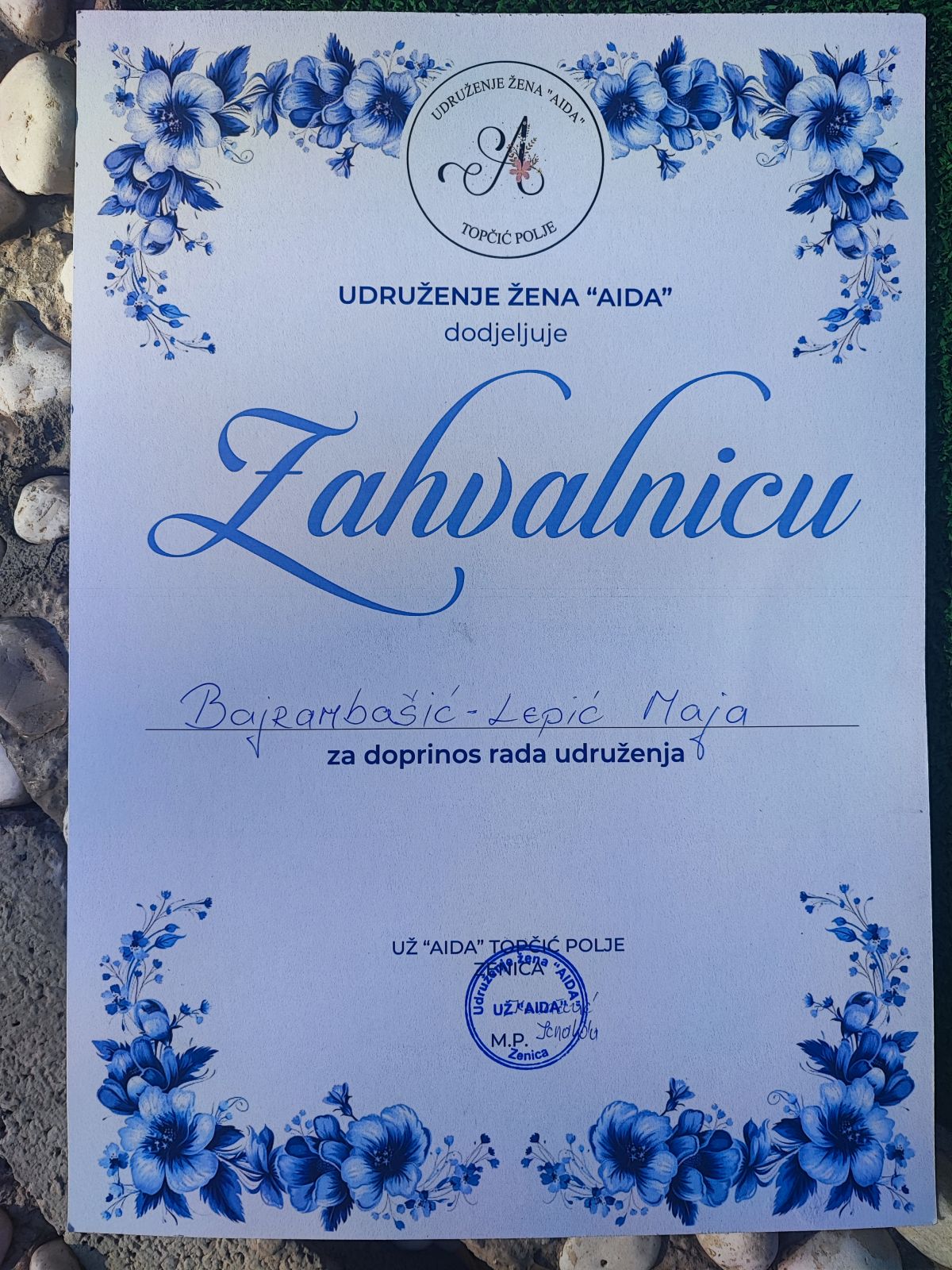 Danas je održana radionica osnova dekupaža u Topčić Polju kod Zenice, u Udruženju žena ” Aida”. Udruženje je postojalo do 2014 kada su nažalost našu zemlju pogodile razorne poplave, te je udruženje ugašeno, pa je ponovo osnovano 2022. i dobilo je ime po predsjednici koja je nažalost preminula do ponovnog otvaranja udruženja.