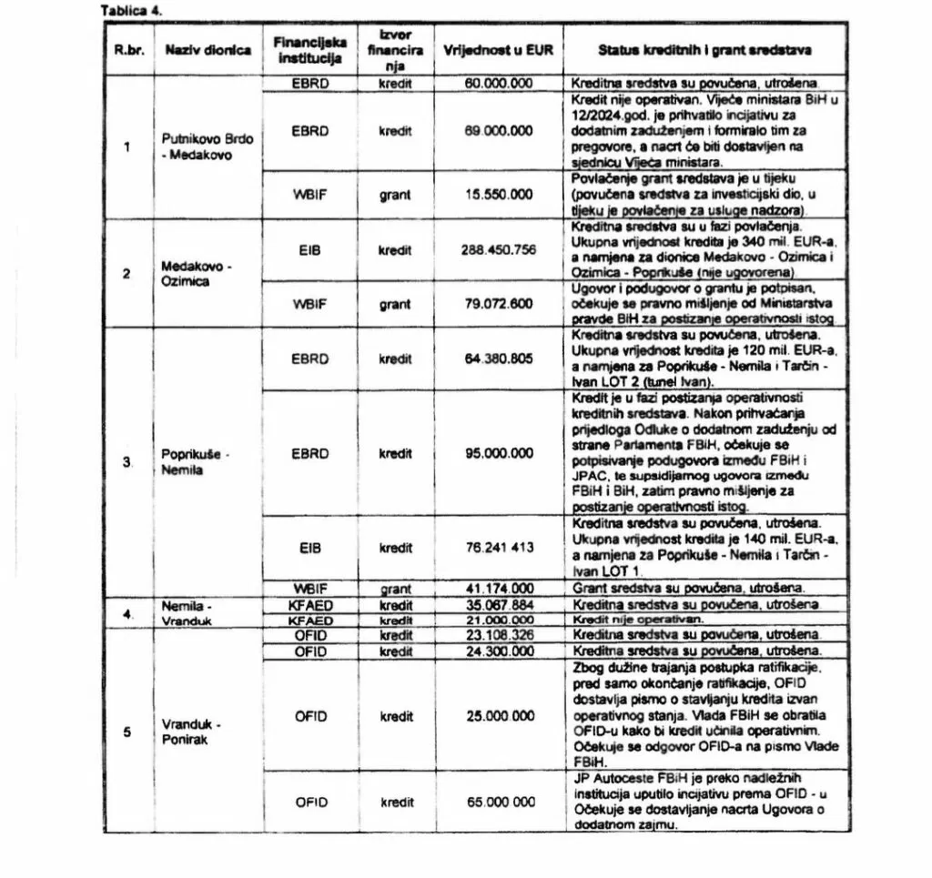 Da su ove informacije tačne potvrdili su i federalni revizori u svom izvještaju o radu Autocesta FBiH za 2024. godinu.