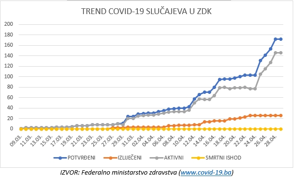 | Pregled stanja COVID-19 infekcije u ZDK za dan 29.04.2020. do 12:20 | ||