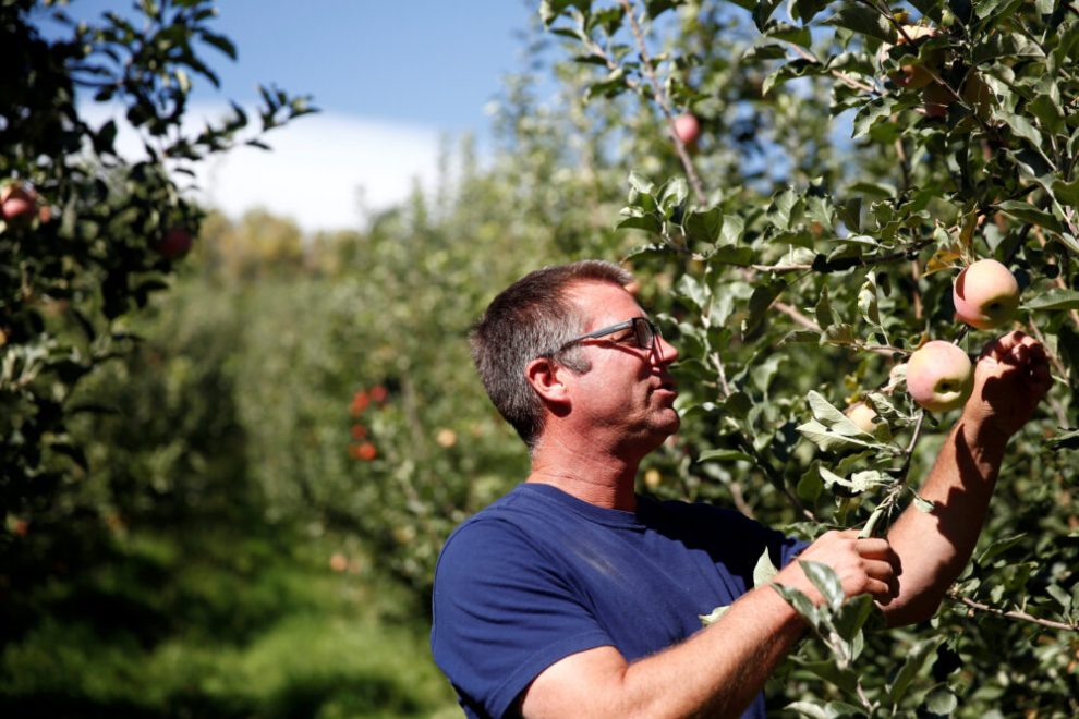 Owner Floyd Stutzman checks on some of the Fuji apple trees about a week before opening their apple orchards for U-picking at the Stutzman Ranch near Wenatchee, Washington, U.S., September 2, 2018. REUTERS/Lindsey Wasson