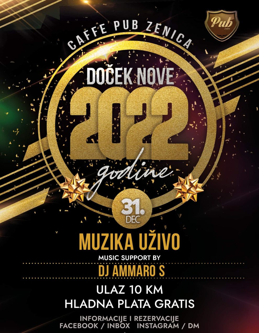 Doček Nove godine- Caffe “Pub” Zenica- NAJBOLJI DOČEK NOVE GODINE 31.12.2022. Caffe “Pub” Zenica