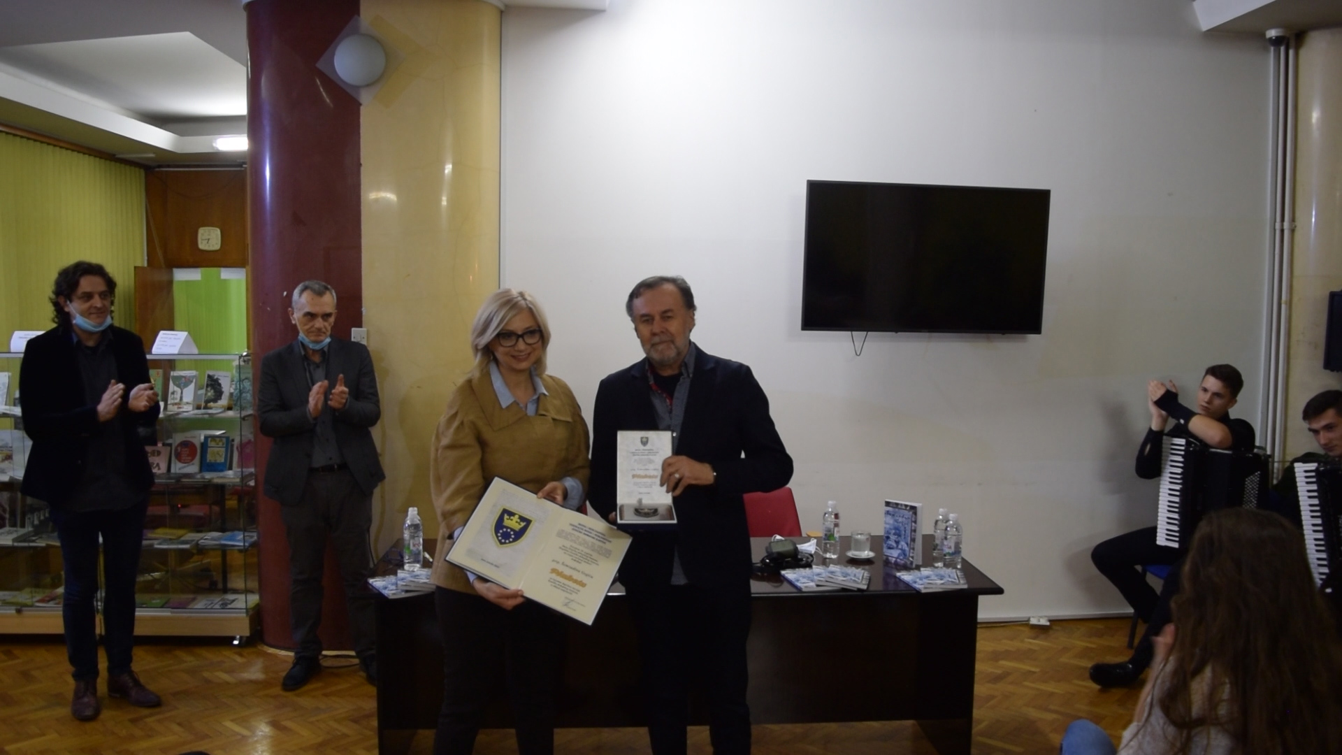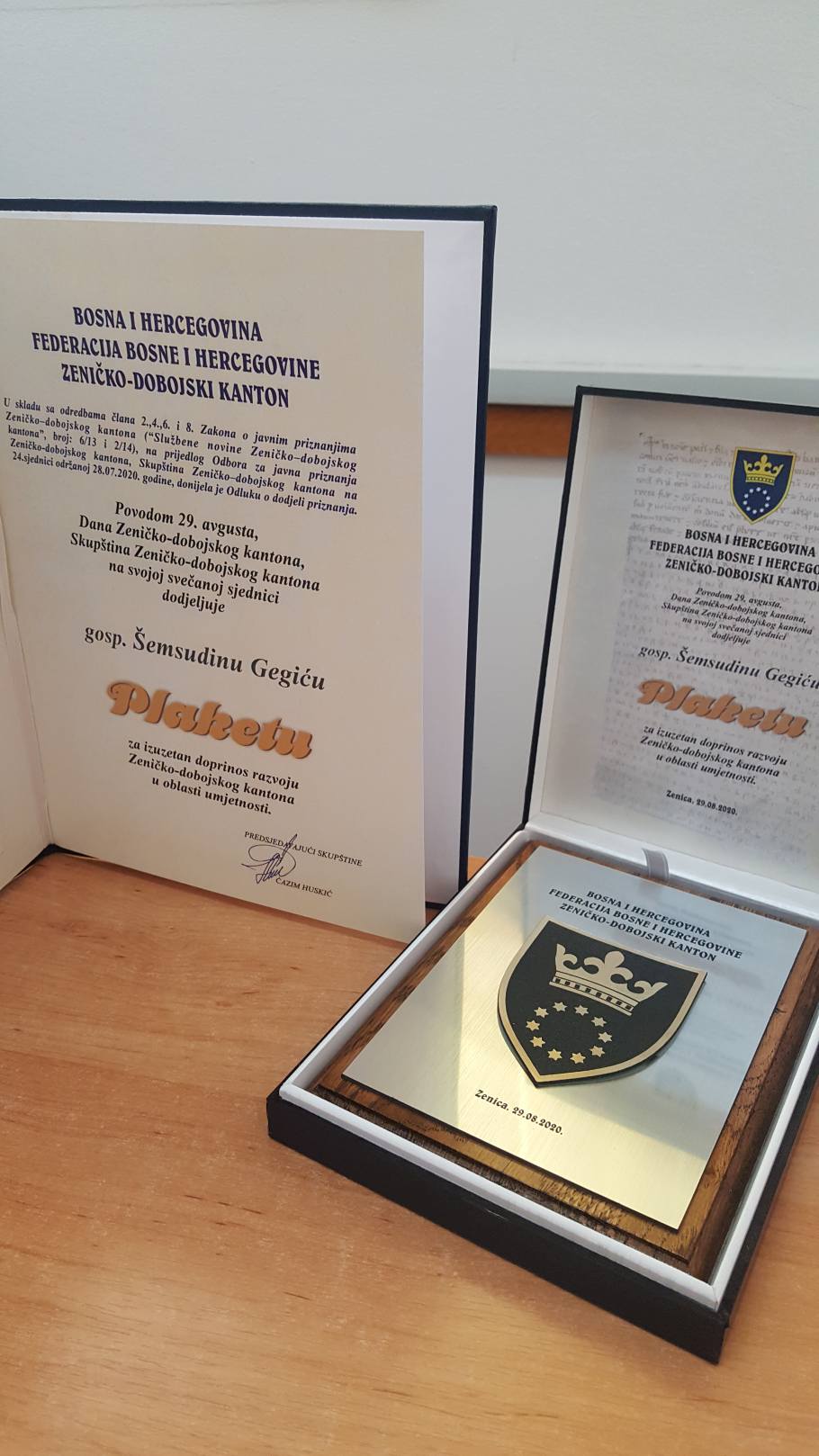 Dodjela Plakete ZDK Šemsudinu Gegiću – Sinoć je (1. oktobra 2020. godine) u divnoj atmosferi Gradske biblioteke Zenica, uz poštovanje svih propisanih mjera zaštite od korona virusa, održana svečanost povodom dodjele Plakete Zeničko-dobojskog kantona reditelju, piscu i profesoru Šemsudinu Gegiću. Plaketa mu je dodijeljena za poseban doprinos razvoju kantona u oblasti umjetnosti. Uvodni govor održao je domaćin, direktor Gradske biblioteke Zenica, Haris Abdagić. Paketu je laureatu uručila zastupnica u Skupštini ZDK, Sanja Renić, a o životu i djelu Šemsudina Gegića govorio je Željko Grahovac. Lijepim tonovima, program su uveličali i uljepšali učenici Srednje muzičke škole Zenica, a isječke iz Gegićevog proznog opusa čitao je glumac BNP Zlatan Školjić. Skupu se, naravno, obratio i sam Šemsudin Gegić, vrlo lijepim i emotivnim govorom.