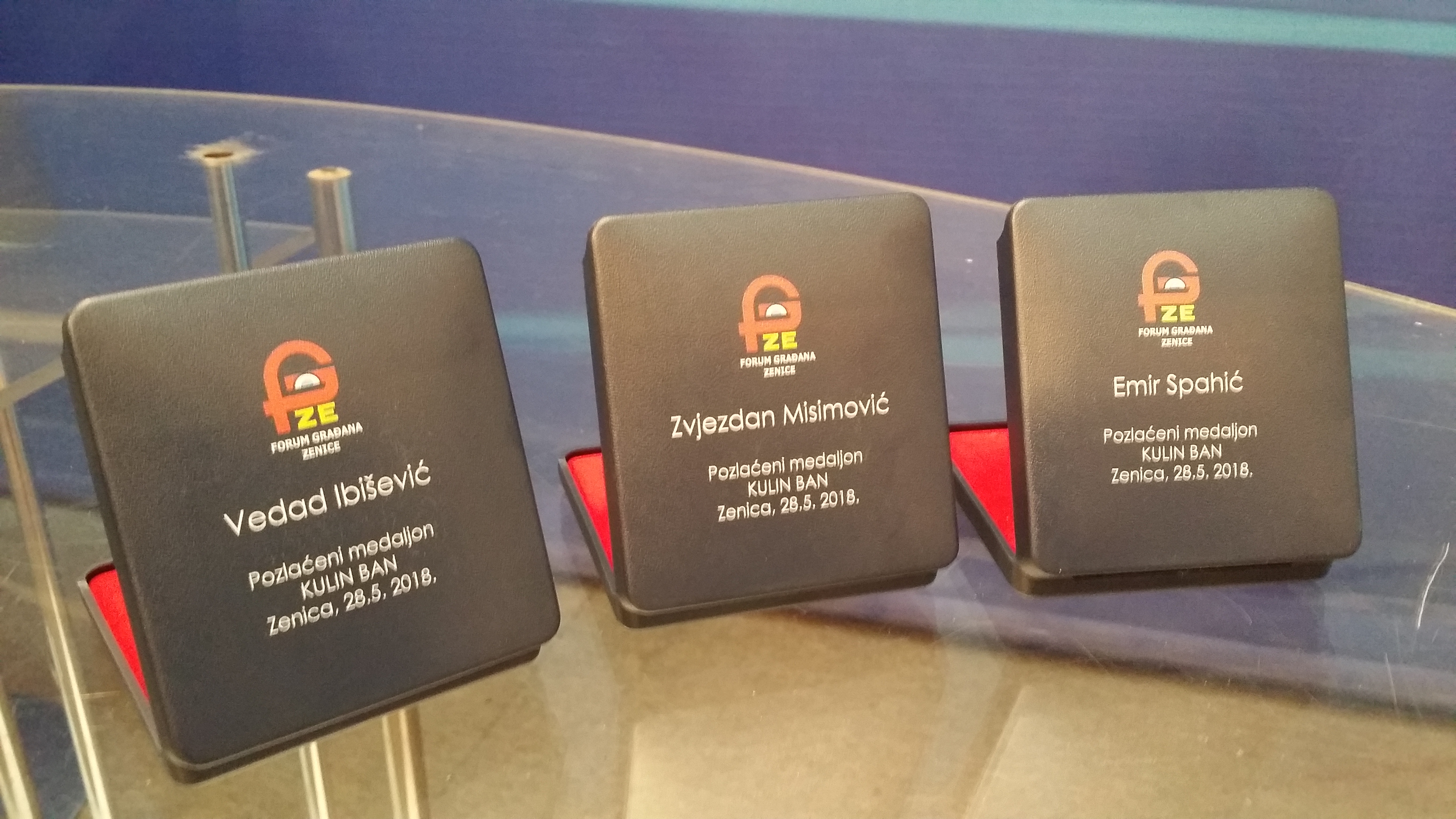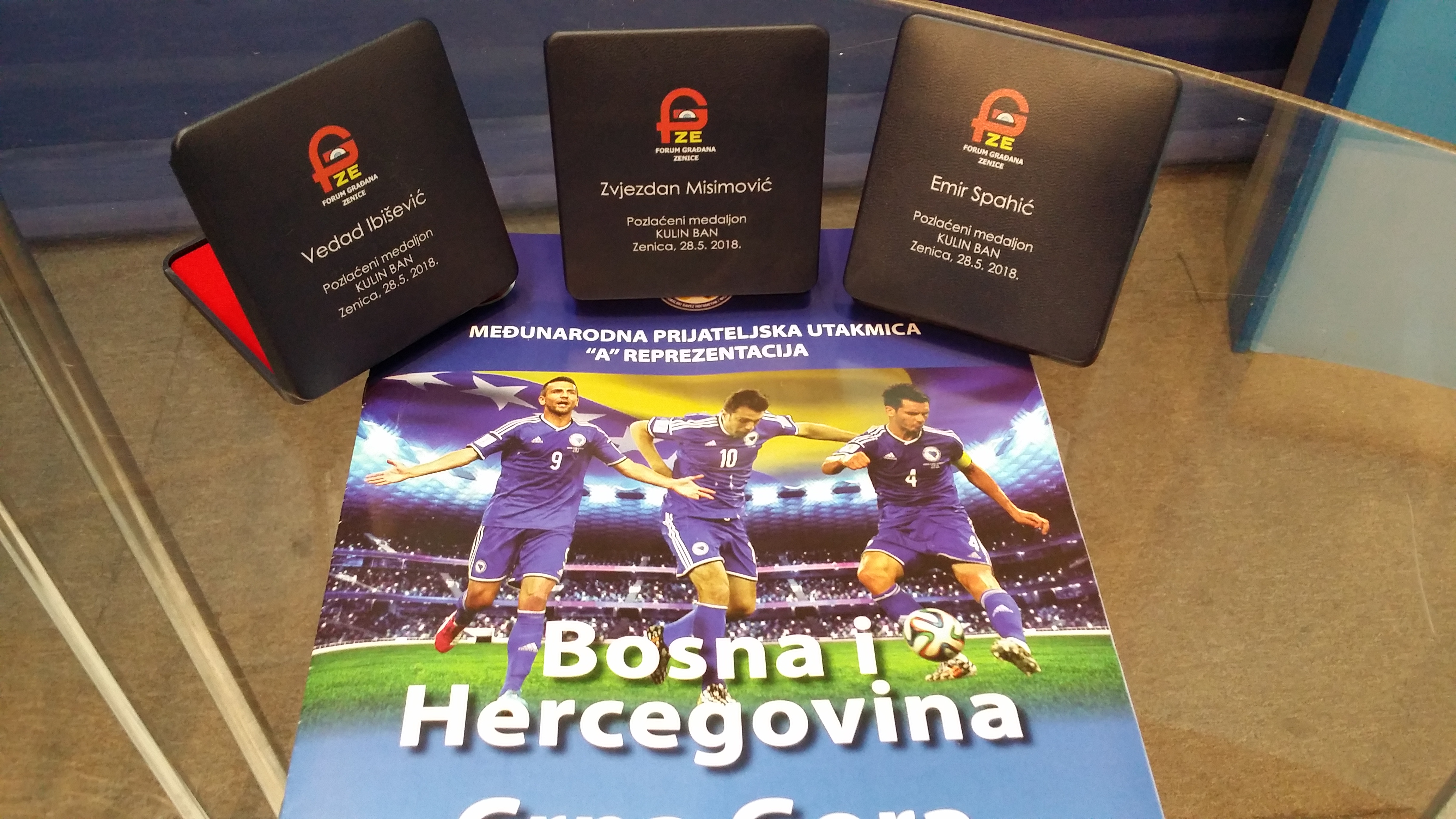 Dodjela priznanja pozlaćeni medaljon KULIN BAN reprezentativcima Vedadu Ibiševiću, Zvjezdanu Misimoviću i Emiru Spahiću – Imajući u vidu da će se na prijateljskoj utakmici sa Crnom Gorom, koja se igra u ponedjeljak, 28.05.2018.godine na stadionu Bilino polje, od reprezentacije oprostiti nogometni velikani Vedad Ibišević, Zvjezdan Misimović i Emir Spahić, Predsjedništvo Foruma građana Zenice je odlučilo da im dodijeli najveće priznanje pozlaćeni “Medaljon Kulin ban” za izuzetan doprinos u promociji i afirmaciji grada Zenice i Bosne i Hercegovine u svijetu. Ovo priznanje je utemeljeno 2003. godine u sklopu manifestacije “Od Kulina bana i dobrijeh dana” koja je organizovana pod visokim pokroviteljstvom Predsjedništava BiH, a povodom obilježavanja 800-te godišnjice potpisivanja Bilinopoljske izjave. Na taj način banu Kulinu, utemeljitelju bosanske državnosti, putem pozlaćenog medaljona kao i PTT markice dato trajno obilježje.