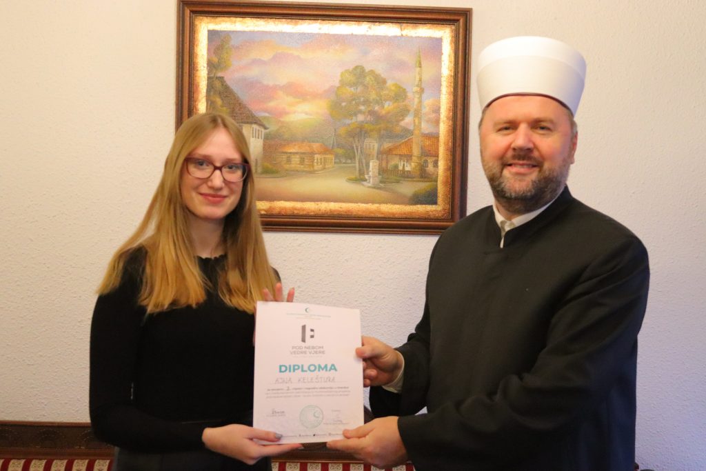 U četvrtak, 05. januara 2023. godine, u Muftijstvu zeničkom organiziran je prijem i dodjela nagrada i priznanja za pobjednike 1. međunarodnog takmičenja “Pod nebom vedre vjere – Islam i Evropa u iskustvu Bosne” s područja Muftiluka zeničkog.