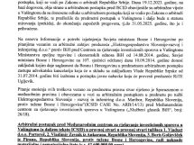 Na zahtjev Predstavničkog doma Parlamentarne skupštine Bosne i Hercegovine, državno Pravobranilaštvo je sačinilo izvještaj o trenutnim arbitražnim postupcima koji se vode protiv BiH, a koji će biti razmatran na sjednici zakazanoj za četvrtak 15. maja.