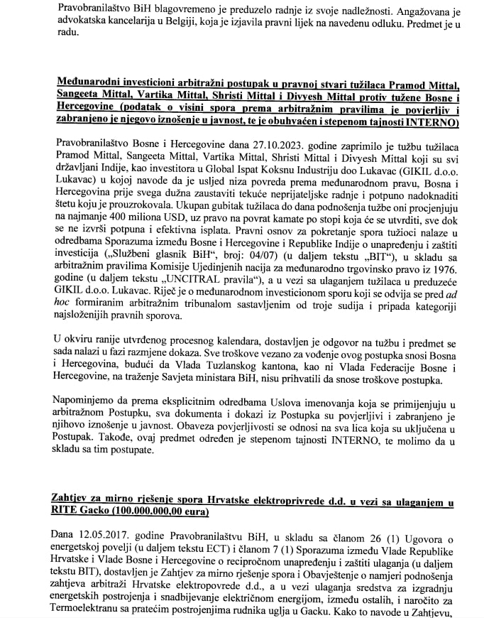 Radi se o investicionoj arbitraži koju vode državljani Indije protiv BiH zbog navodne štete vezane za GIKIL Lukavac.