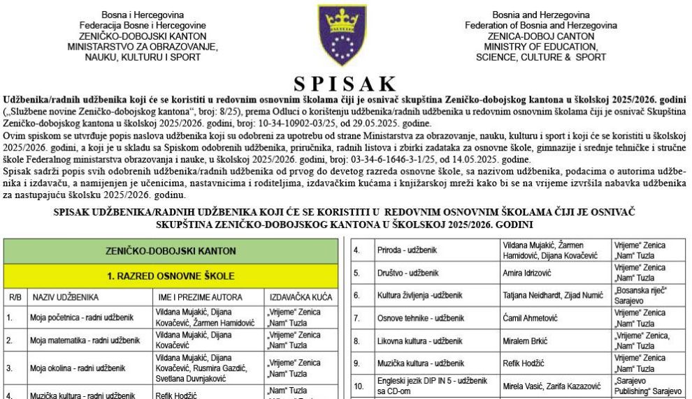 Ljubaznošču Ministarstva obrazovanja, nauke, kulture i sporta Zeničko-dobojskog kantona Zenicablog vam donosi