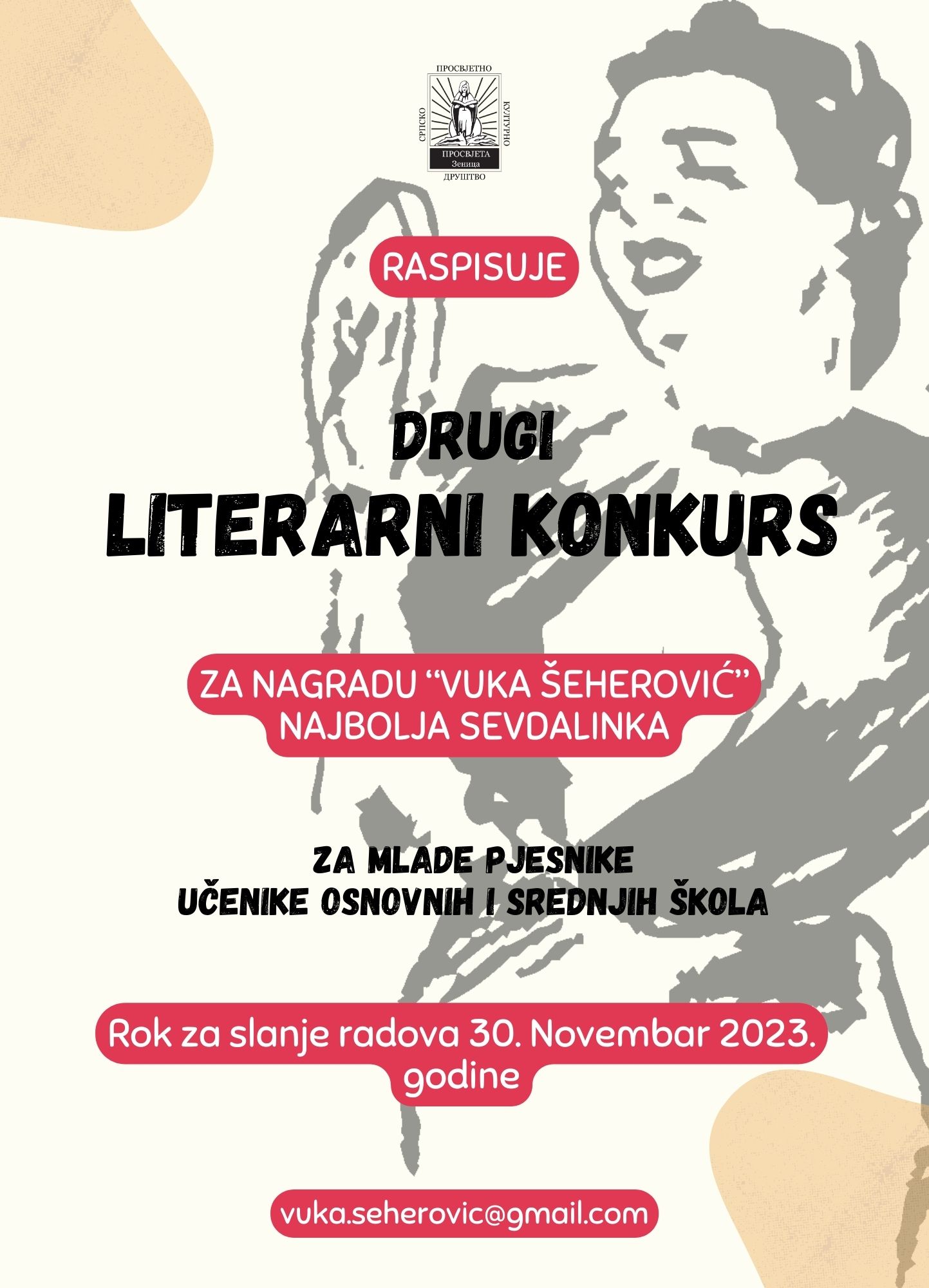 U svrhu popularizacije i spasa od zaborava tradicionalne narodne pjesme sevdalinke SPKD Prosvjeta Zenica poziva sve učenike osnovnih i srednjih škola iz BiH i regiona da se prijave na drugi konkurs u čast prve jugoslovenske pjevačice sevdaha koja je nastupila u prestižnoj pariškoj dvorani „Oliympia“, Vuke Šeherović.
