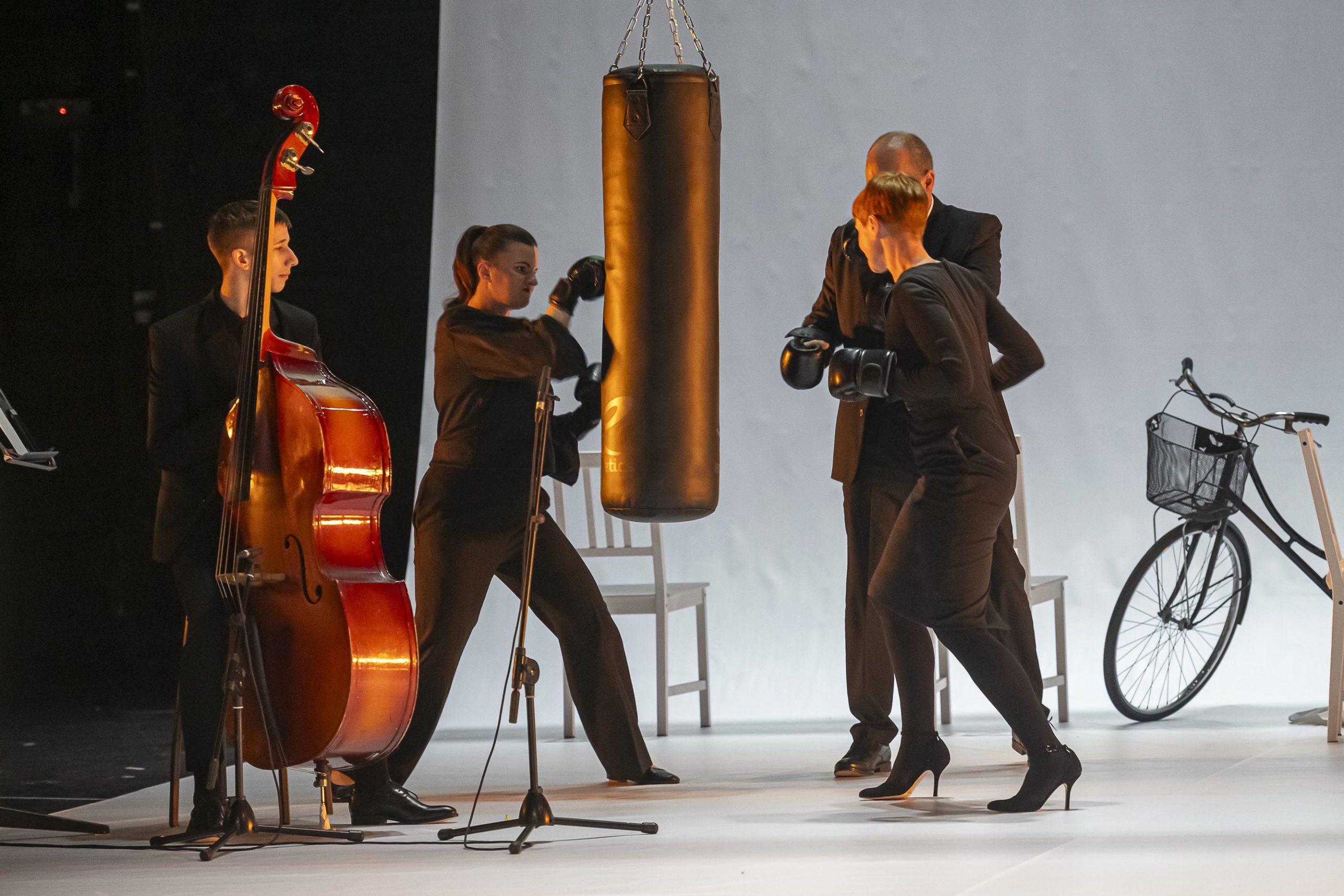 U predstavi igraju: Ermin Sijamija, Slaven Vidak, Vedrana Božinović, Sanela Krsmanović-Bistrivoda, Dino Bajrović i muzičar Rastko Zečević.