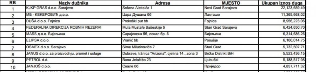 Ističu da su u 2017. godine nad 263 porezna dužnika pokrenuti postupci restruktuiranja, stečajni ili likvidacioni postupak u kojima je naplaćeno samo 616.691 KM. Dodaju da je od 2008. nad ukupno 2353 poreskih dužnika pokrenut stečajni i likvidacioni postupak.