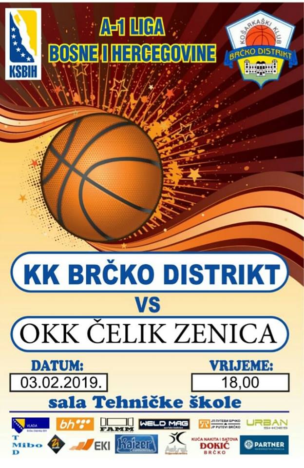 Zenički OKK Čelik gostuje u nedjelju 03.02. u Brčkom kod ekipe KK Brčko Distrikt, a ova utakmica se igra od 18 sati u sali Tehničke škole u Brčkom. Jesenas u Zenici u 1.kolu prvenstva bilo je ubjedljivih 112:85 (20.10.2018. god.).